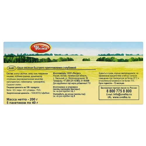 Увелка Каша овсяная быстрого приготовления с клубникой, порционная (5 шт.)