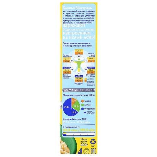 Ясно cолнышко Хлопья овсяные с пшеничными отрубями, 400 г