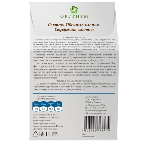 Мистраль Хлопья овсяные с отрубями, 400 г