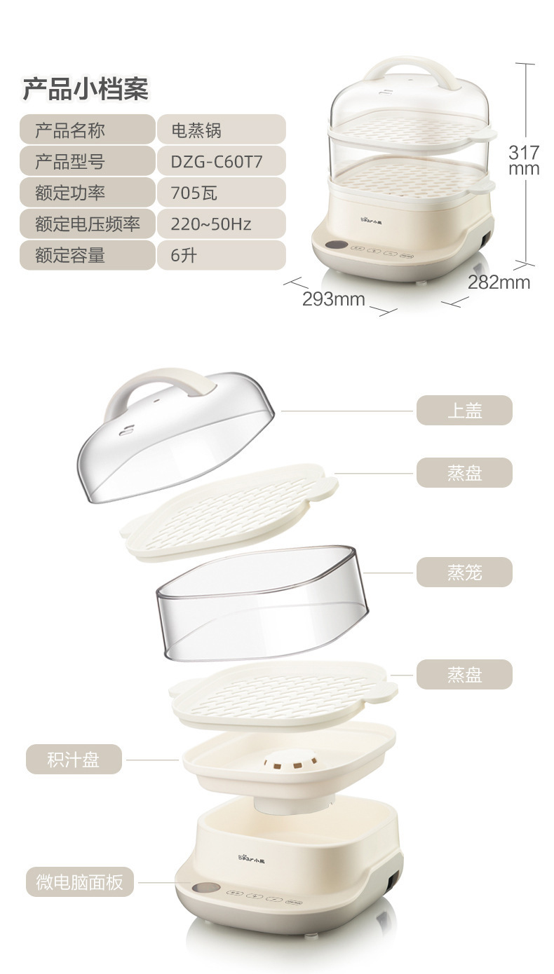 Пароварка электрическая 电蒸锅, белый