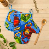 Набор кухонный "Перчики" прихватка 18х18 см, рукавица 21*27, синий, 160г/м2, хлопок 100%