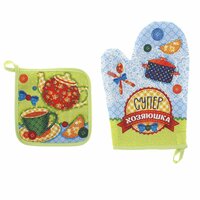 Набор "Доляна" Супер хозяюшка: варежка 18х26 см, прихватка 17х17 см, рогожка 162 г/м2