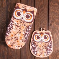 Набор Совушка цветочки рукавица 30х16 см, прихватка 19х16 см, темный персик, хлопок 100%