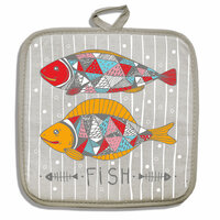 Прихватка Рыба, размер: 18х18см, шелкография, 50%хлопок, 50%лён