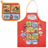 Набор Доляна фартук/прихватка/варежка, Горох зел, 100%пэ, рогожка 200 гр/м