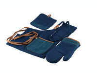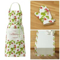Набор Доляна фартук/прихватка/варежка, Зеленая полоска, 100%пэ, рогожка 200 гр/м