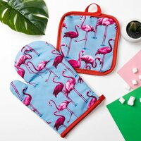 Кух. набор 2 пр. Доляна "Фламинго"цв.голубой,прихватка 16*16 см, рукавица 26*16 см,100% п/э 384062