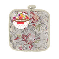 Прихватка Душистый пион, размер: 18х18см, рогожка, серый, 100% хлопок