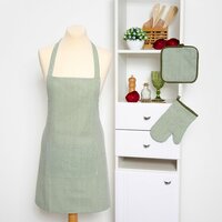 Набор Доляна фартук/прихватка/варежка, Зеленая полоска, 100%пэ, рогожка 200 гр/м