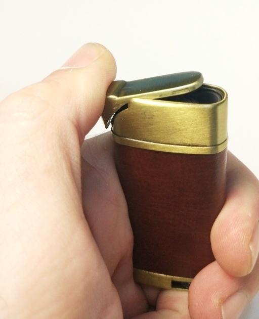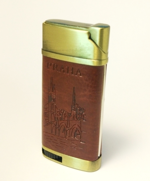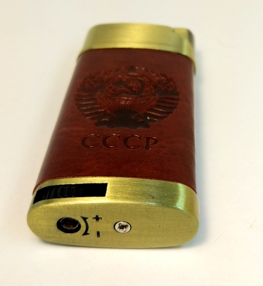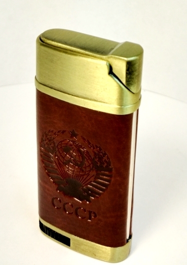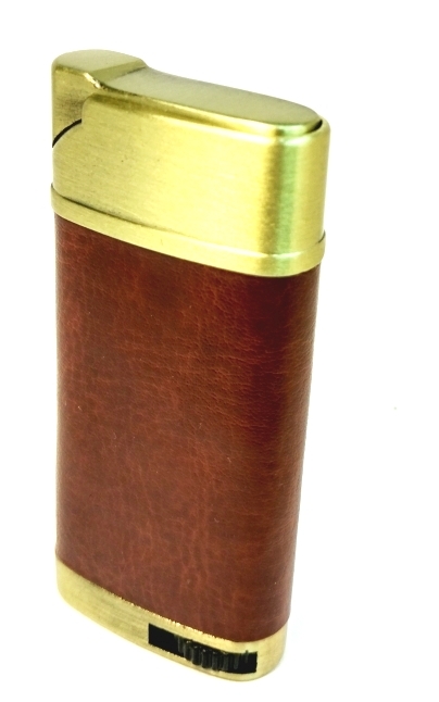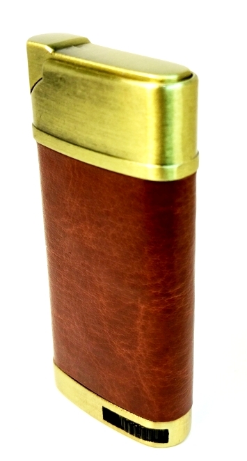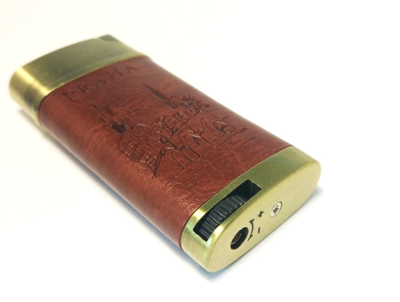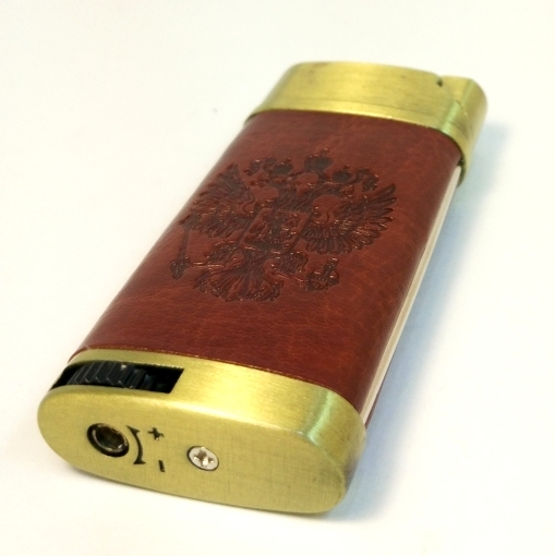 Зажигалка газовая многоразовая кожаная вставка коричневая с различным тиснением 4824