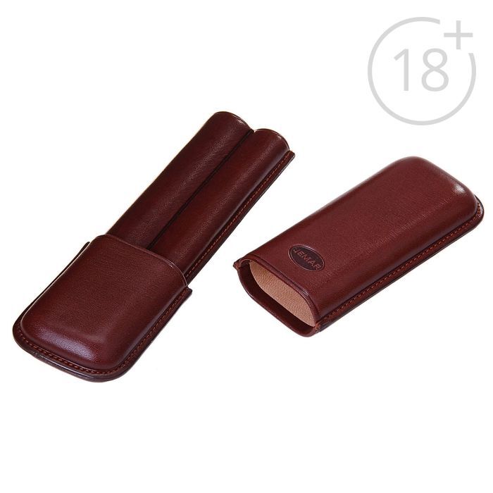 Портсигар кожаный темно-коричневого цвета для 2 сигар, d:1,8 см, 6 x 3 x 18 см