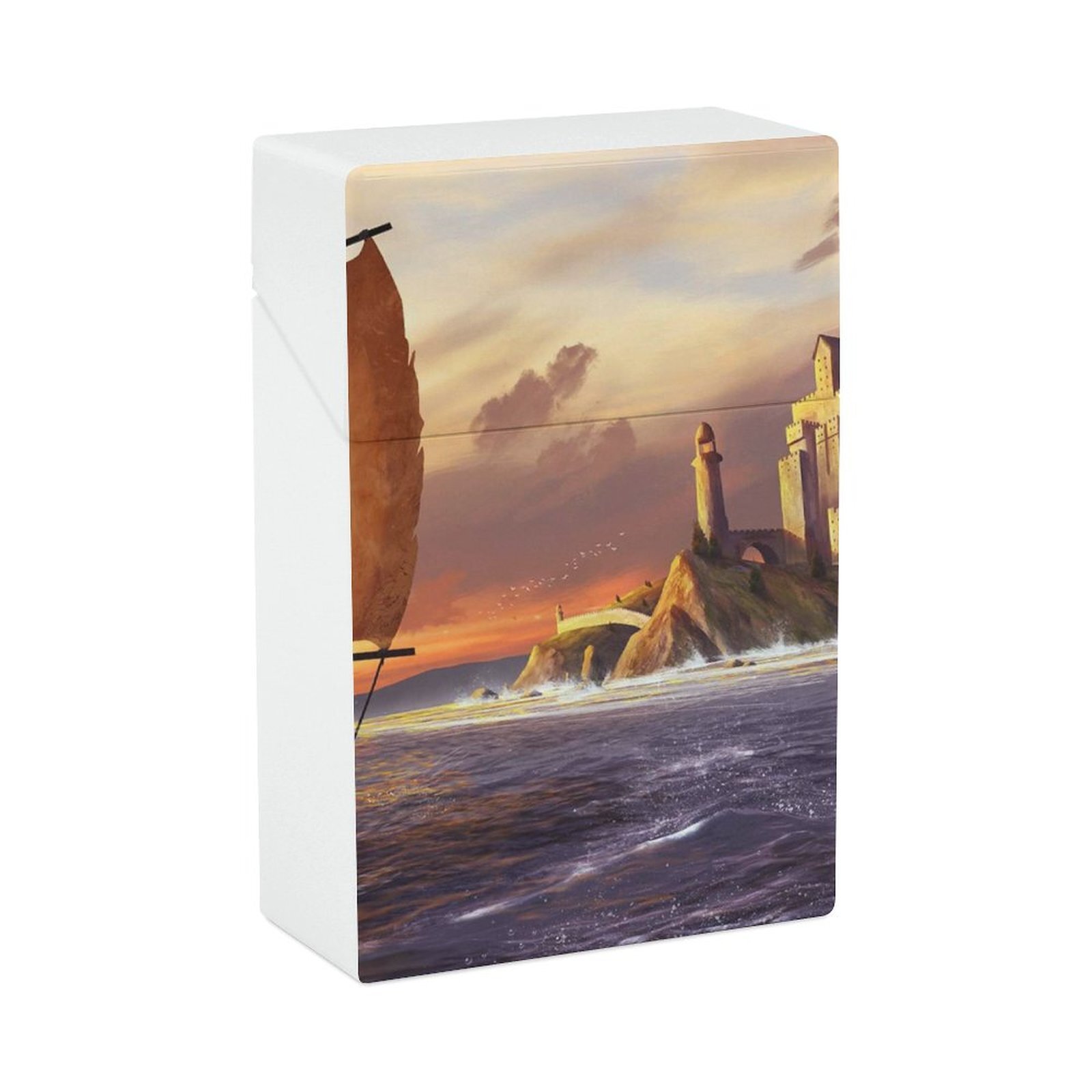 Художественный Рисунок Морской Парусник Замок Птиц Закат Портсигар