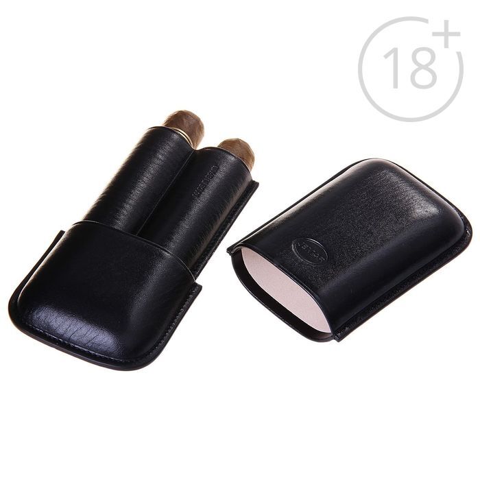 Портсигар черный для 2 сигар D 2,1 см, 16 x 3,5 x 7,5 см