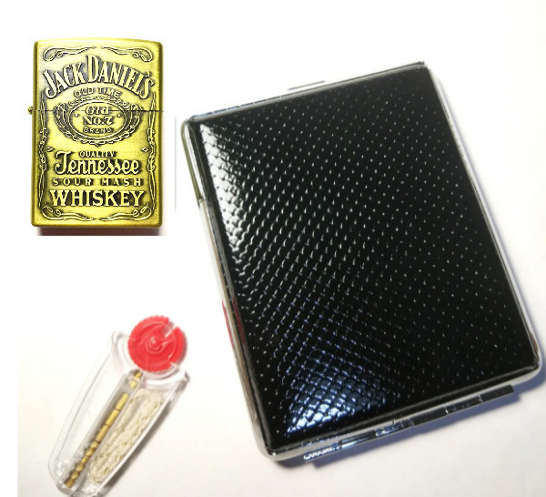 Комплект: портсигар (20 сигарет х 100мм) + бензиновая Джек зажигалка + 7 кремней + запасной фитиль