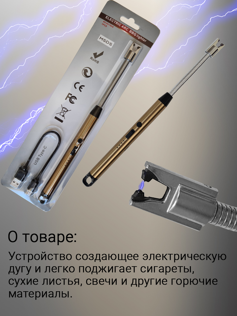 Электронная зажигалка Electric Arc BBQ lighter USB (Gold)