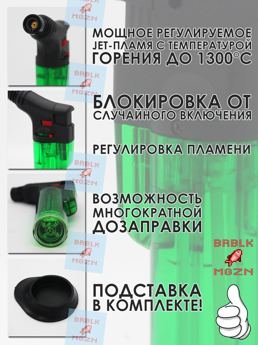 Портативная газовая турбо горелка с пъезоподжигом +подставка, +запас (Зеленый)