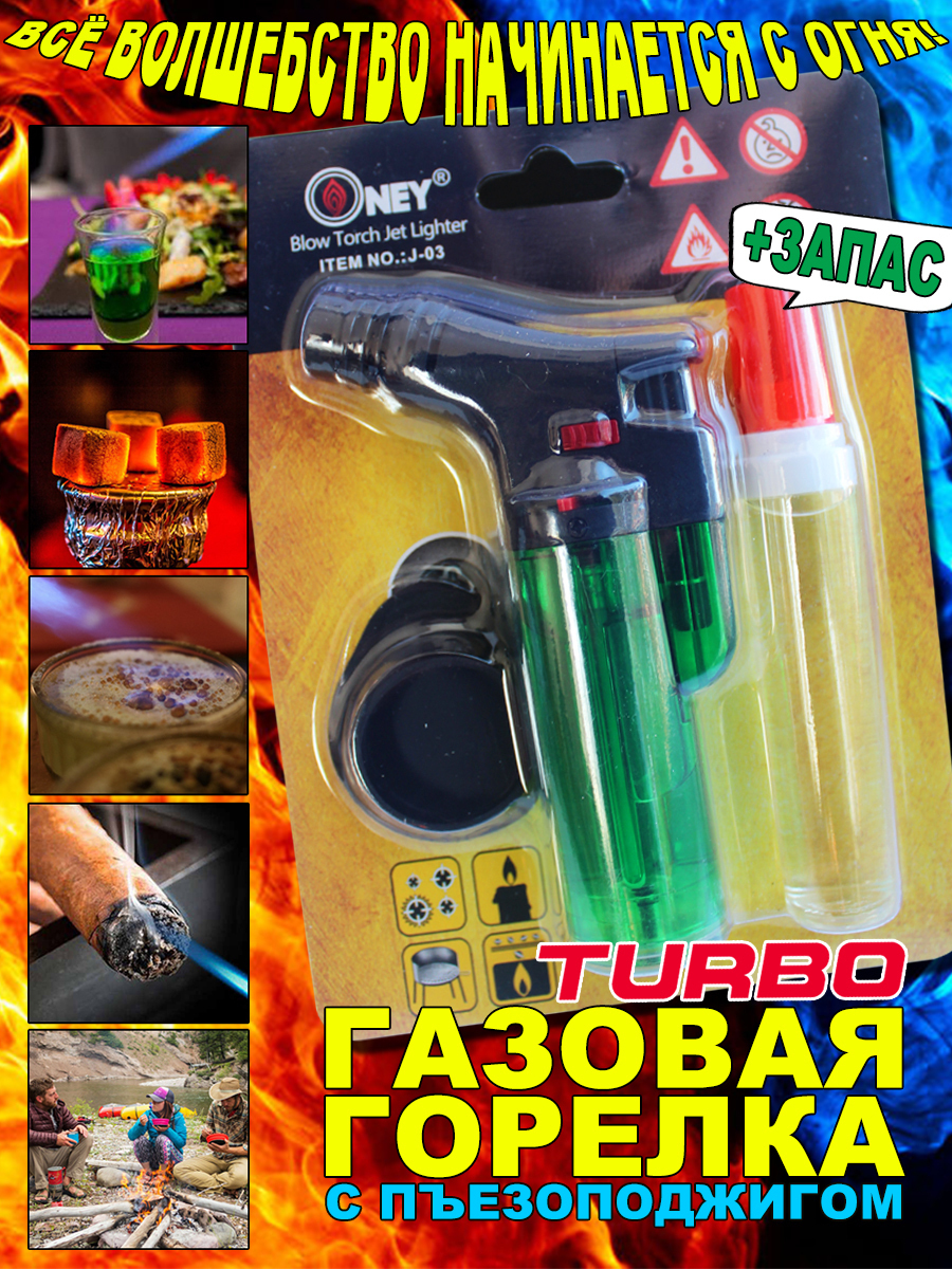 Зажигалка турбо пьезо с фонариком, 5 шт