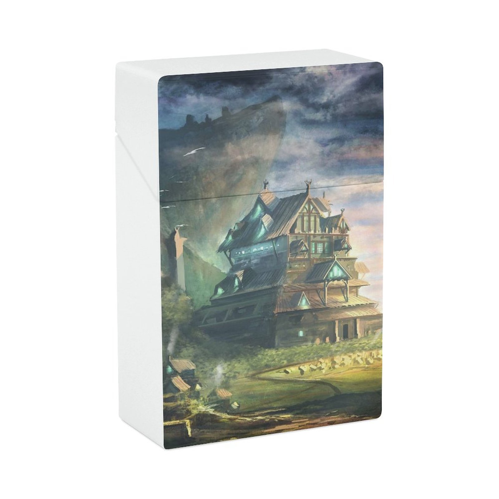 Художественная Живопись Родной Город Долина Дом Горы Птицы Портсигар