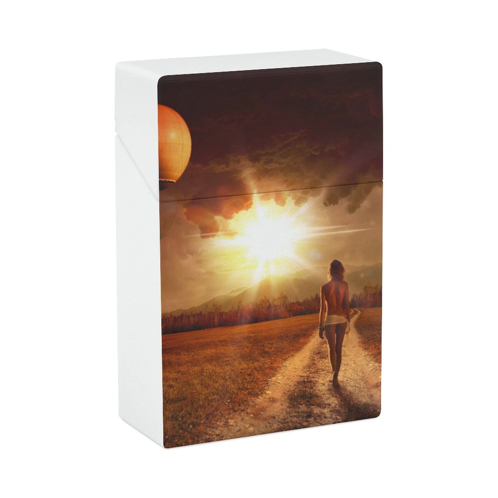 Красивое Искусство Саншайн Воздушный Шар Девушка Вид Сзади Портсигар