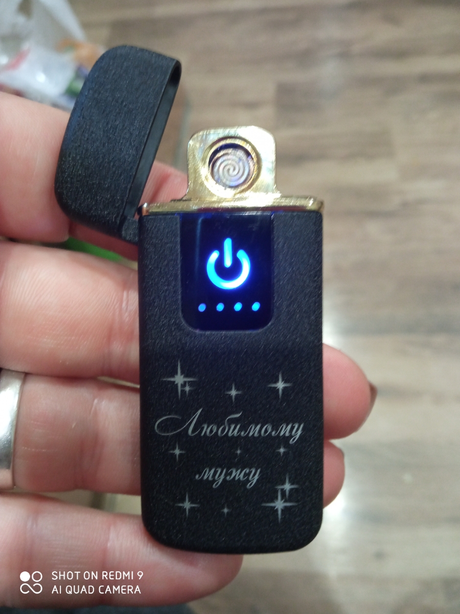 Зажигалка электронная USB, спиральная Любимому мужу, ветрозащитная, с зарядным в комплекте