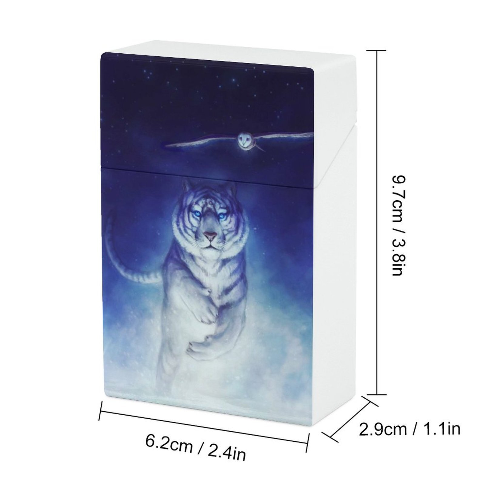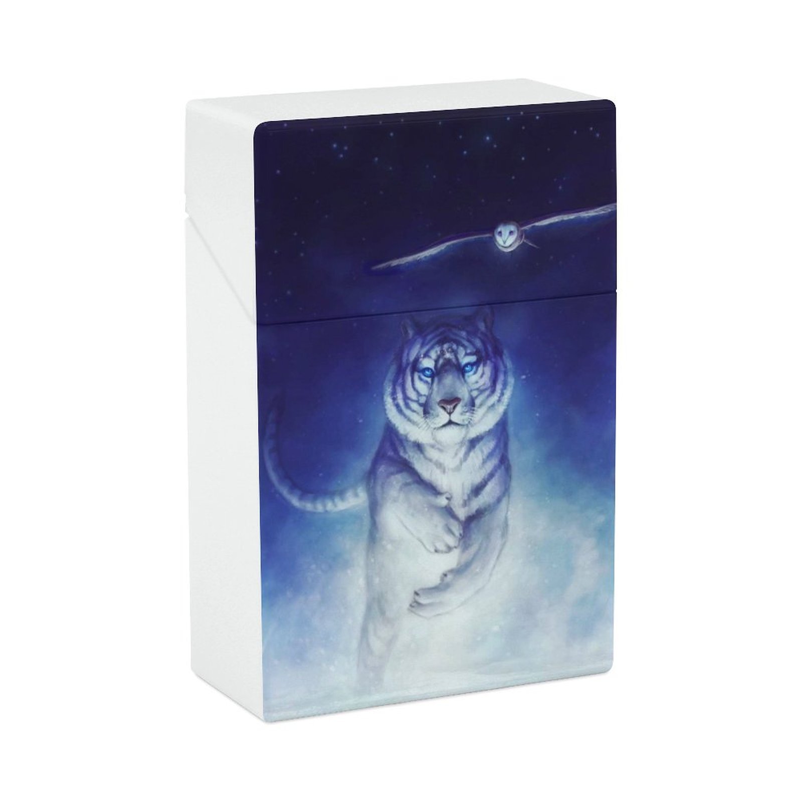 Art White Tiger Running Owl Fying Портсигар для сигарет