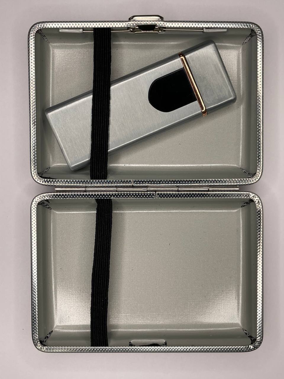Портсигар с вставками из эко-кожи на 14 сигарет с электронной зажигалкой