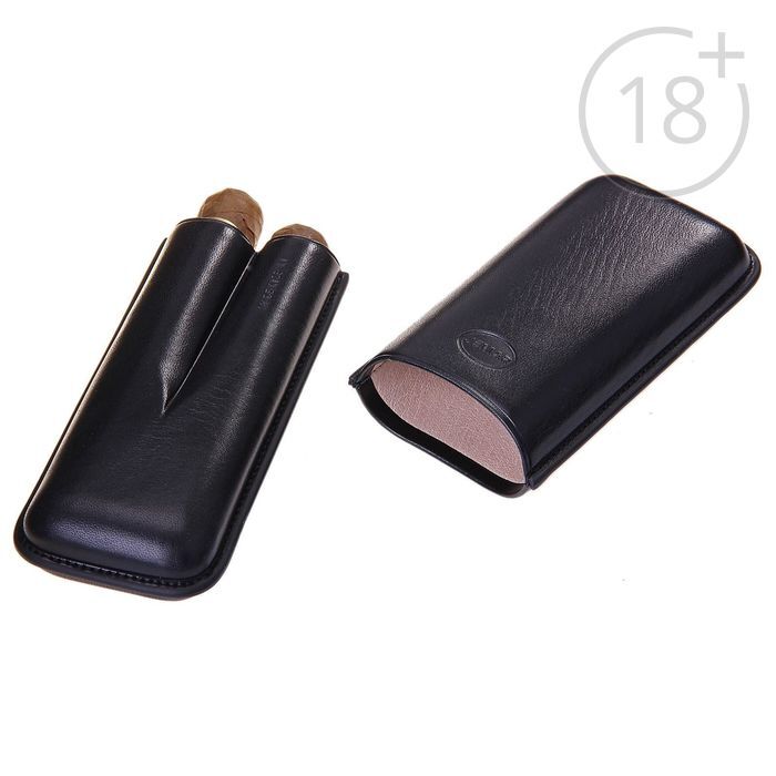Портсигар черный для 2 сигар D 2,1 см, 14,5 x 7,5 x 3,5 см