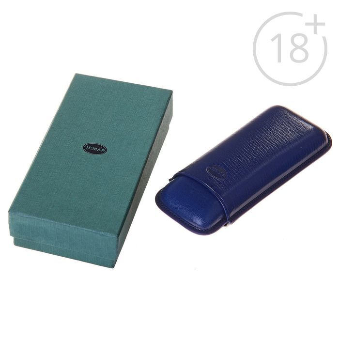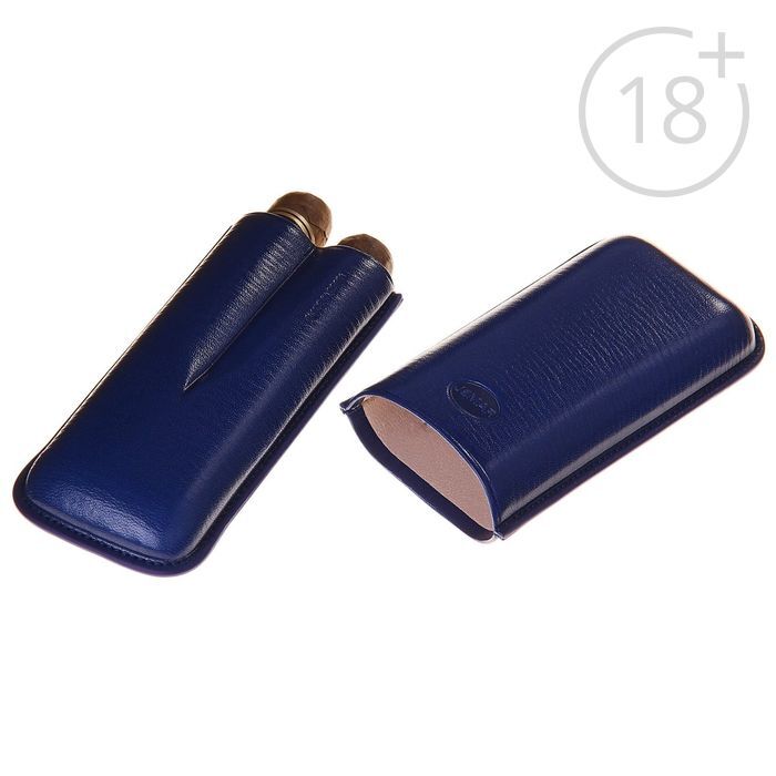 Портсигар синий для 2 сигар D 2,1 см, 14,5 x 7,5 x 3,5 см