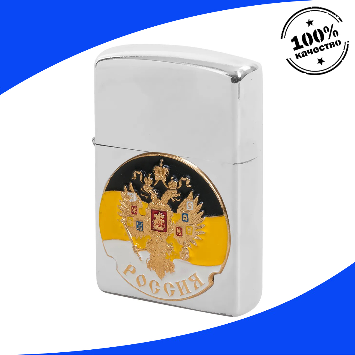 Зажигалка с символикой Имперский флаг России бензиновая серебристая 4403205