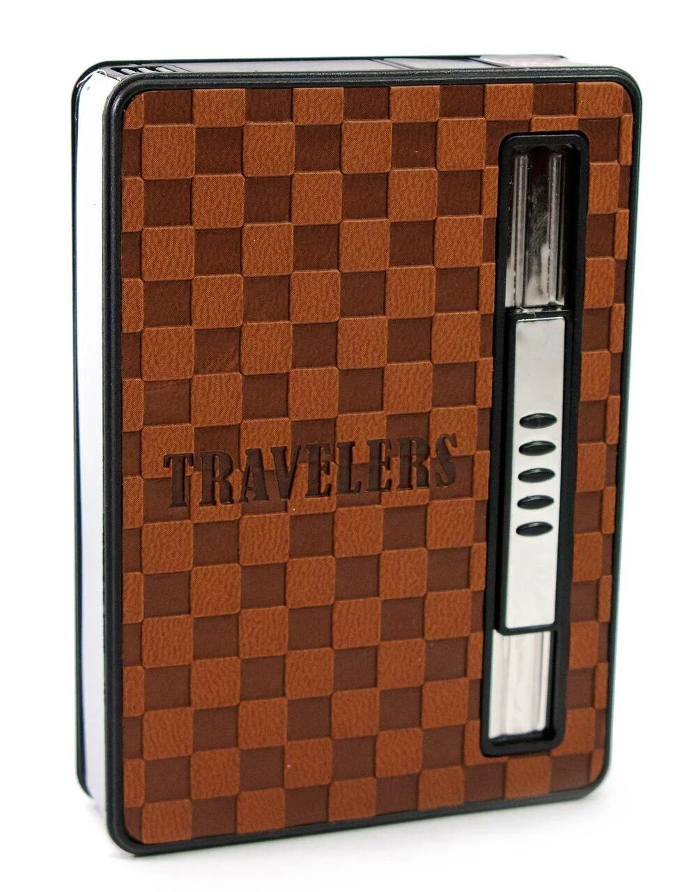 Портсигар Travelers со встроенной турбо зажигалкой и автоматической подачей сигарет