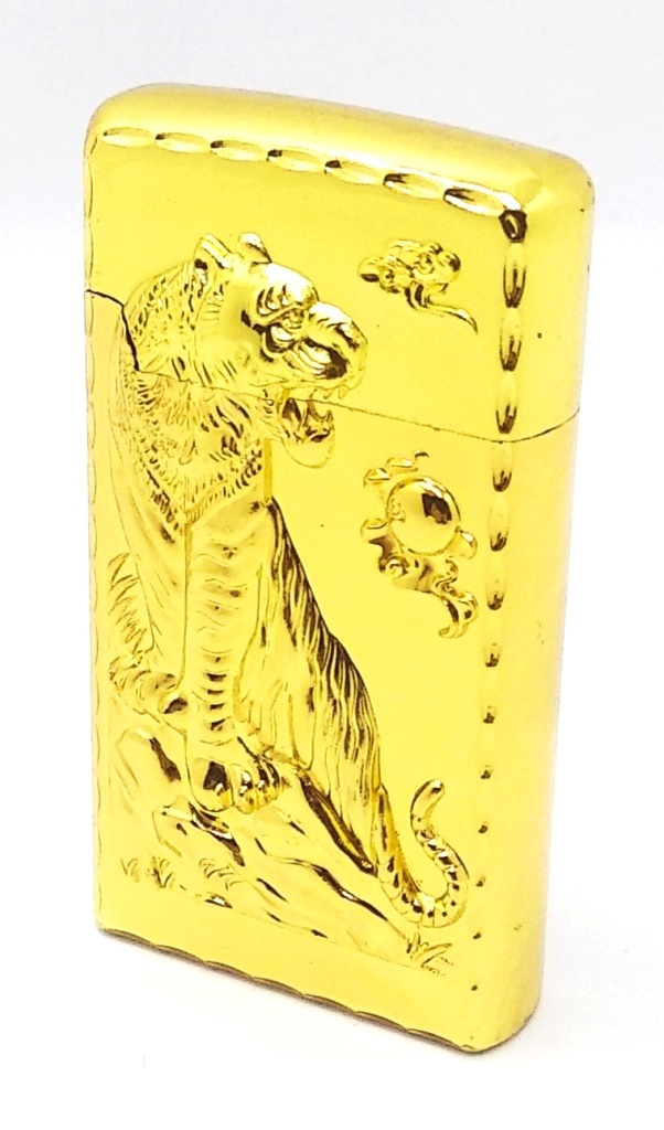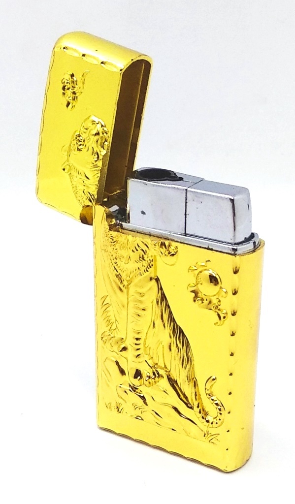 Зажигалка газовая Тигр рельеф зол турбо 49-36