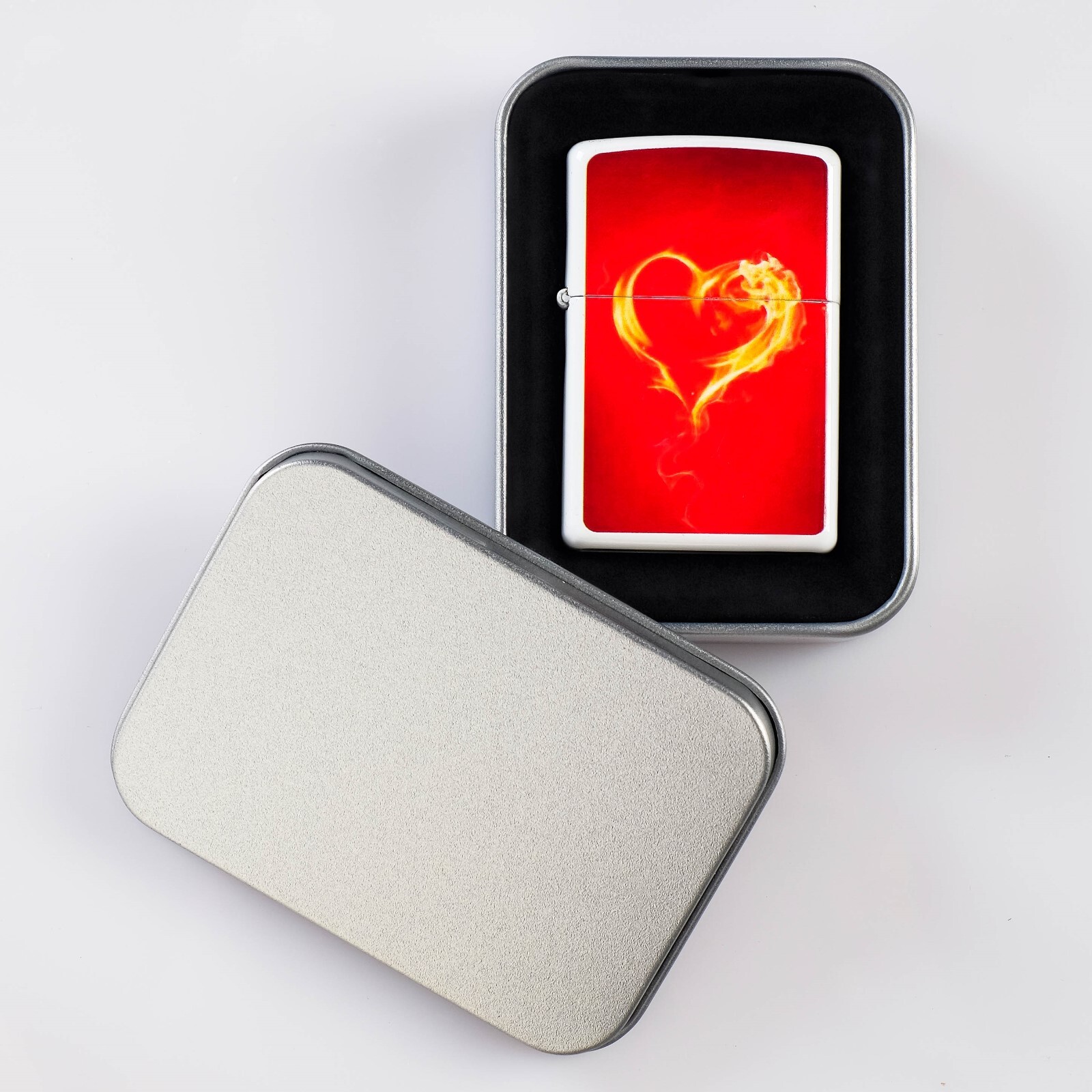 Зажигалка "Огненное сердце" в металлической коробке, кремний, бензин, 6x8 см