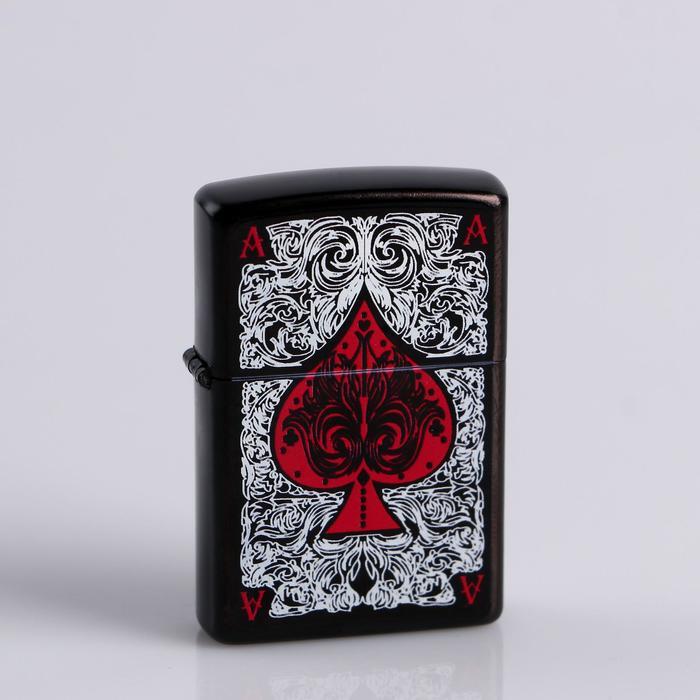 Зажигалка бензиновая "Козырная масть" с кремнием, 5.5х1.2х3.5 см