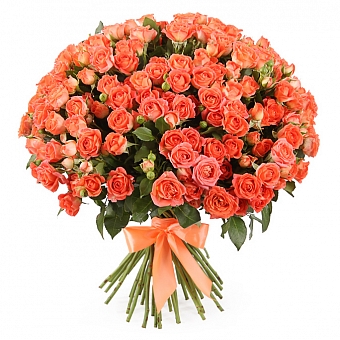 Роза кустовая Hot Bubbles букет. Букет из кустовых роз Хот Баблс 51 шт. 50 см. (Россия)