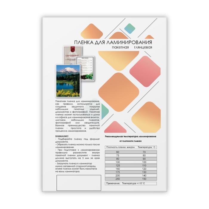 Пленка для ламинирования А4 80мкм 100шт Гелеос 216*303мм глянец ГЕЛЕОС