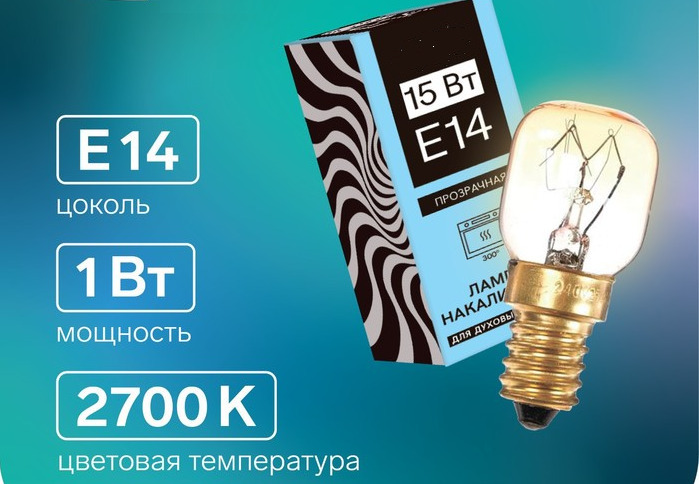 Лампа для плит и духовых шкафов, 15 Вт, E14, 220 В, прозрачная колба