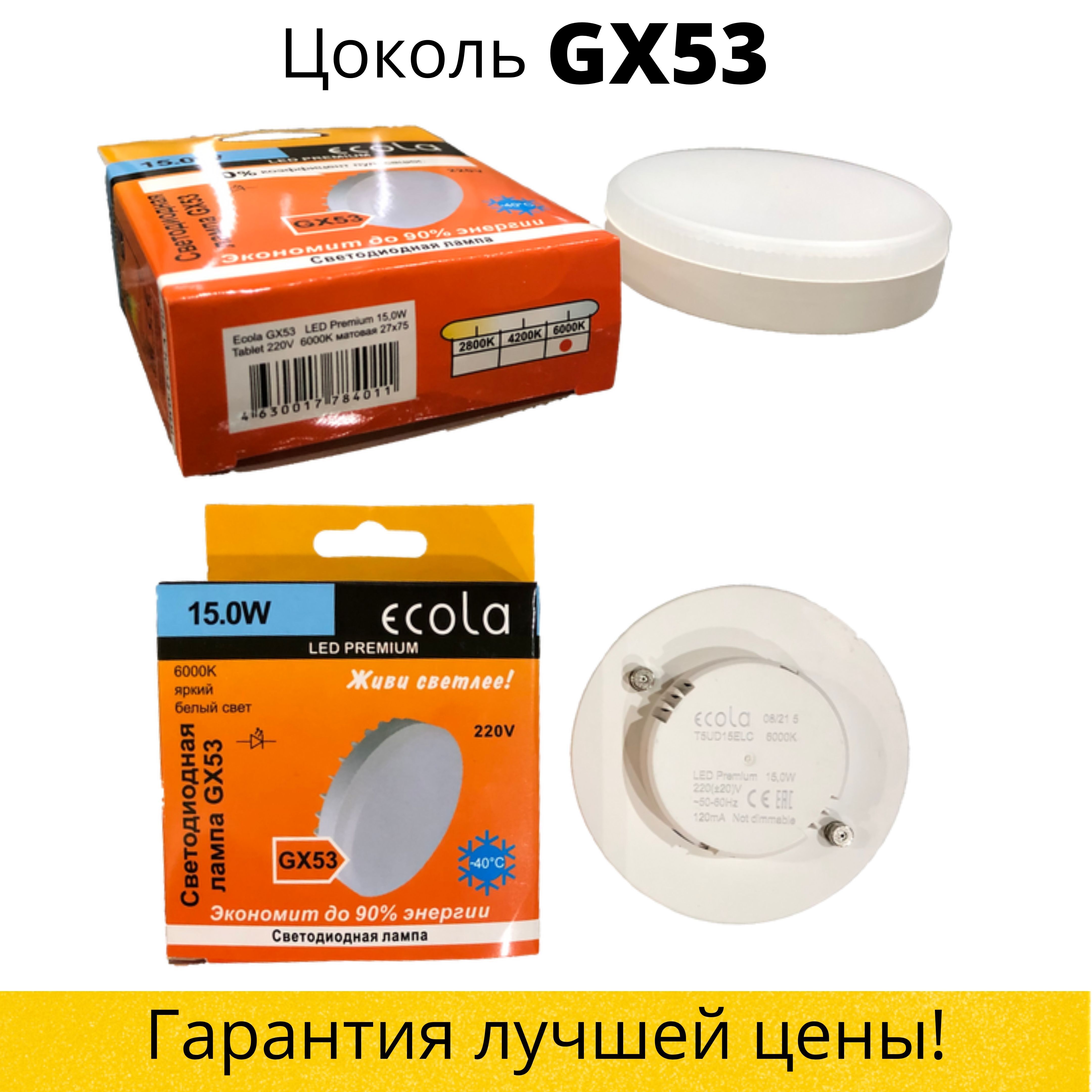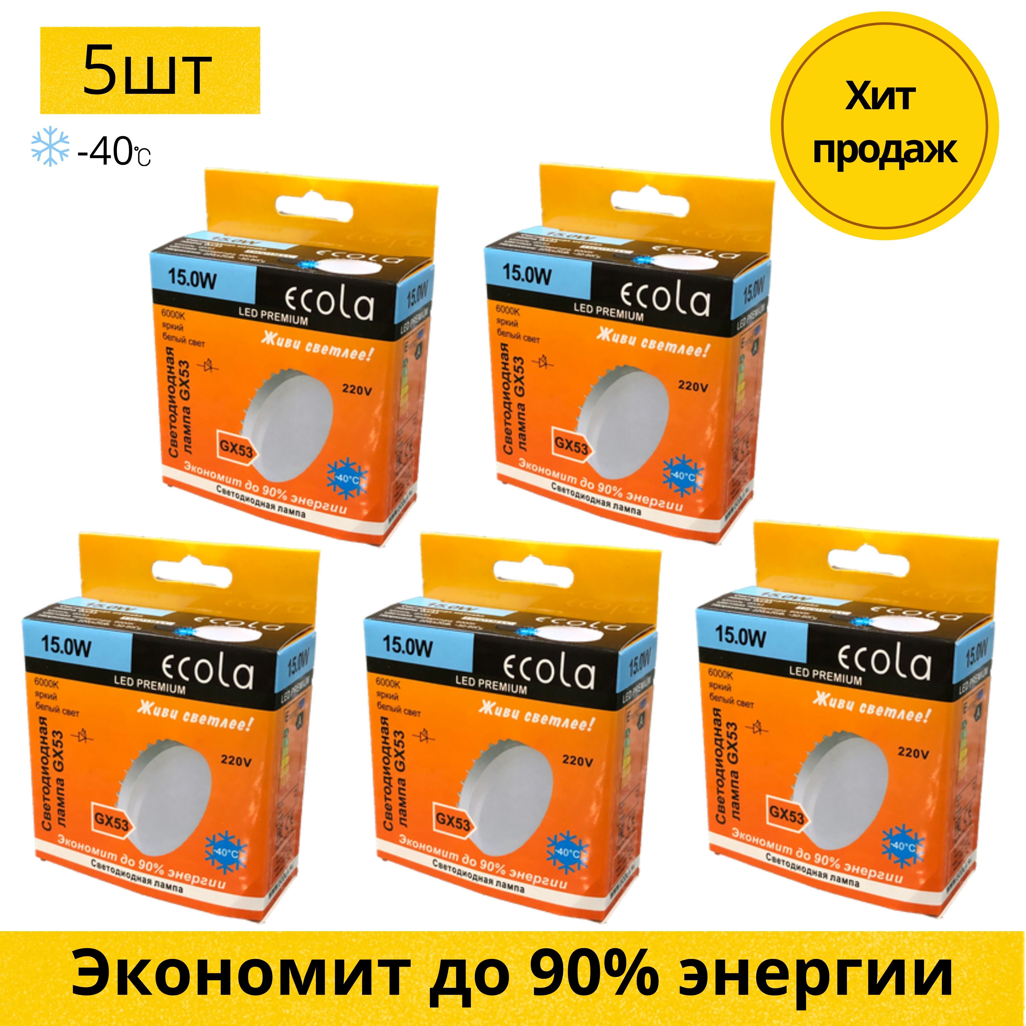Лампочка светодиодная Ecola GX53, Нейтральный белый свет, 15W, 5 штук / энергосберегающая лампа