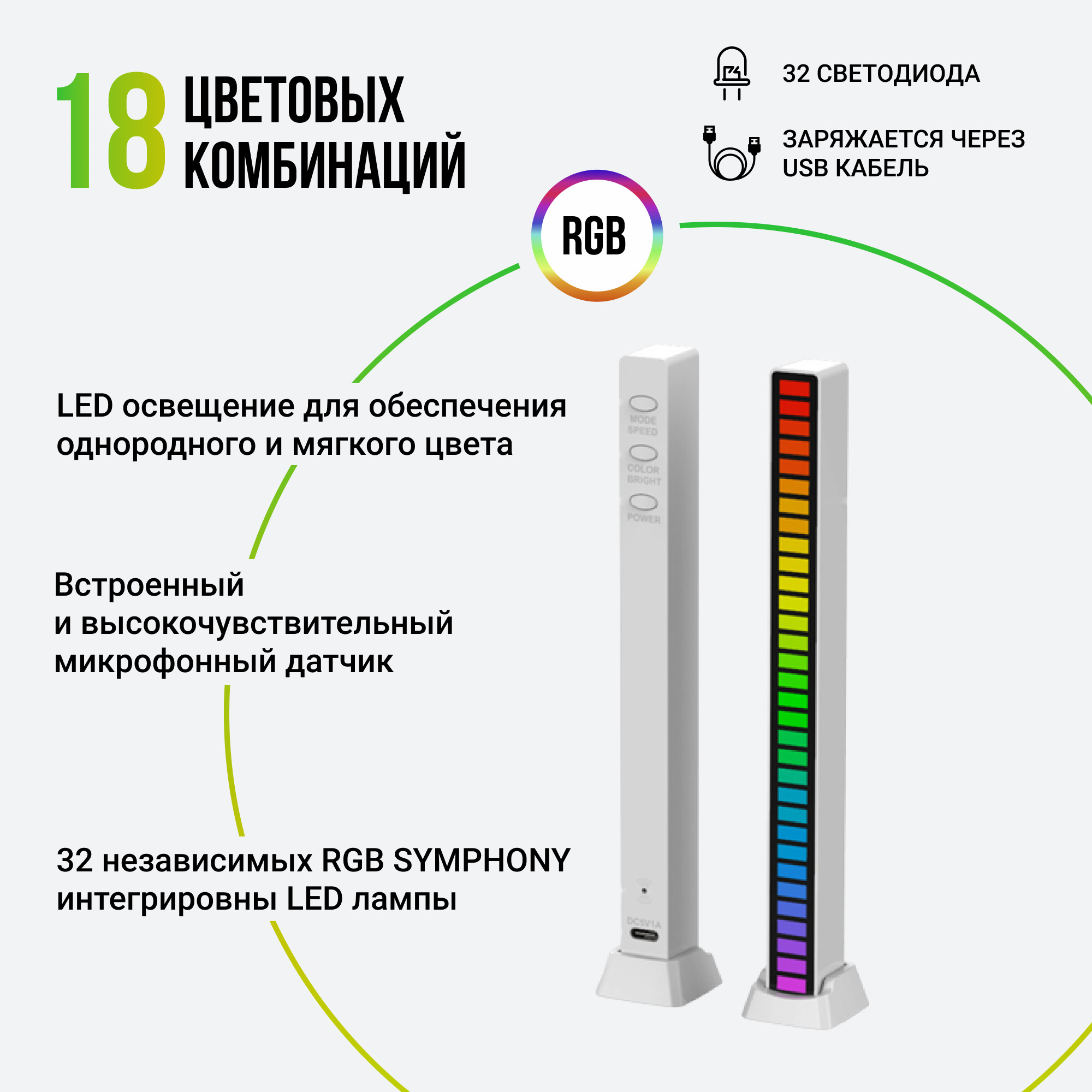 Лампа специальная Лампа светодиодная эквалайзер, RGB свет, Светодиодная, 1 шт.