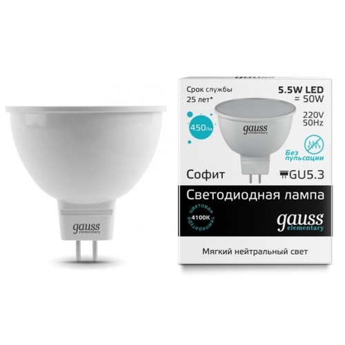 Лампа светодиодная gauss 13526, GU5.3, JCDR, 5.5Вт