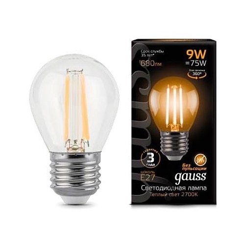 Лампа светодиодная gauss 105802109, E27, G45, 9Вт