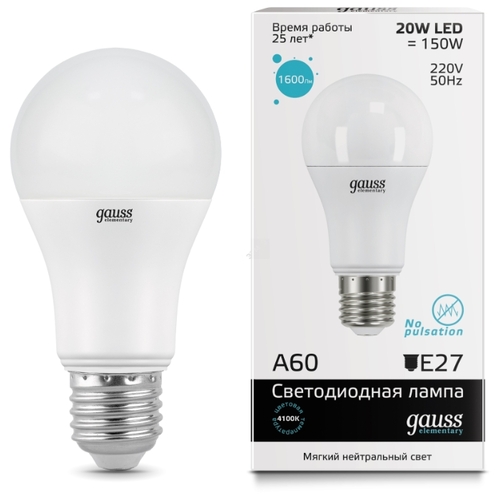Лампа светодиодная gauss 23229, E27, A60, 20Вт