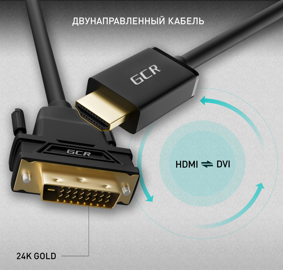 Кабель HDMI DVI двунаправленный GCR 1 метр для мониторов телевизоров и компьютеров Dual Link 19M / 25M 24К GOLD Full HD черный
