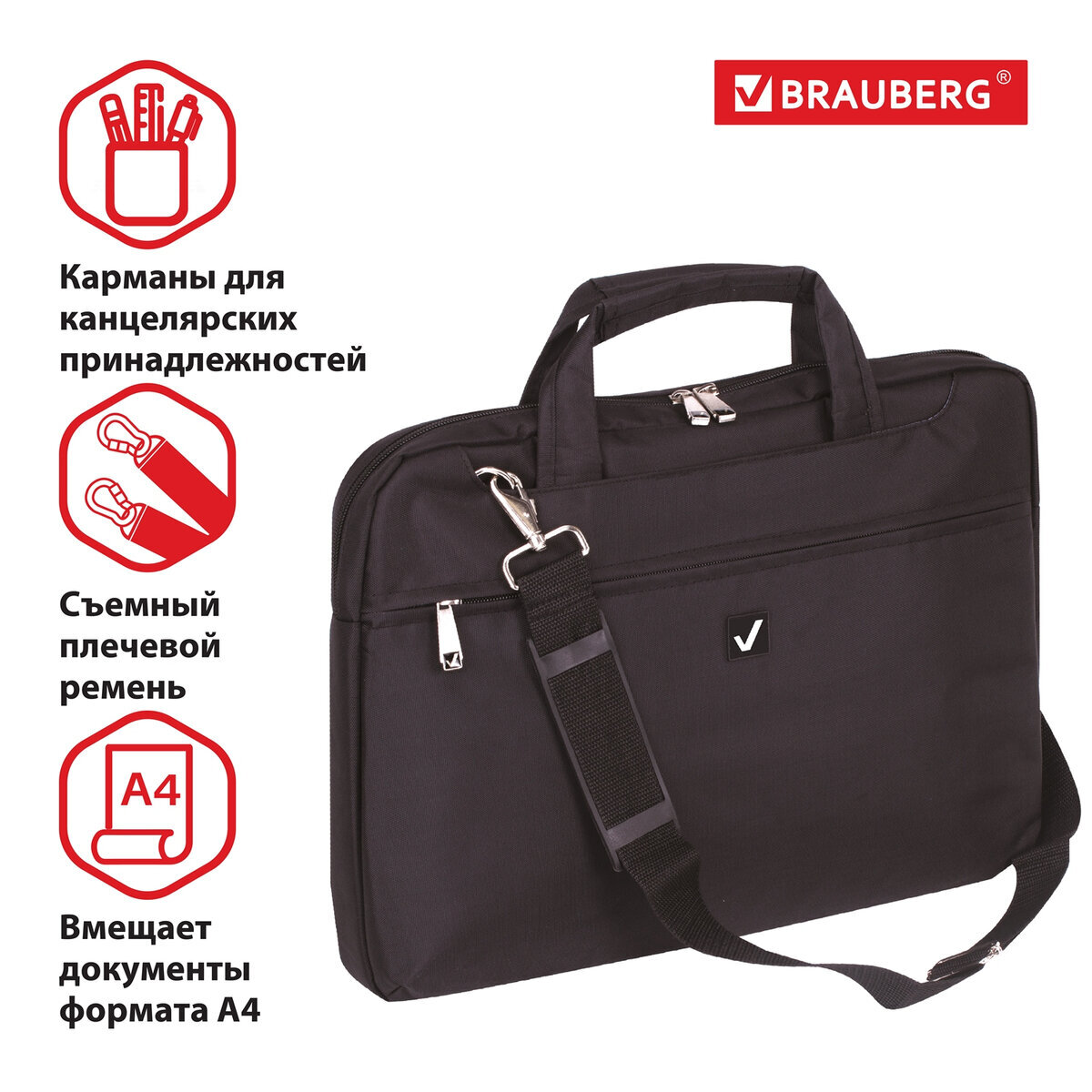 Сумка/портфель для ноутбука/планшета/документов деловая с ручками Brauberg "Chance", 35х25х4 см, черная
