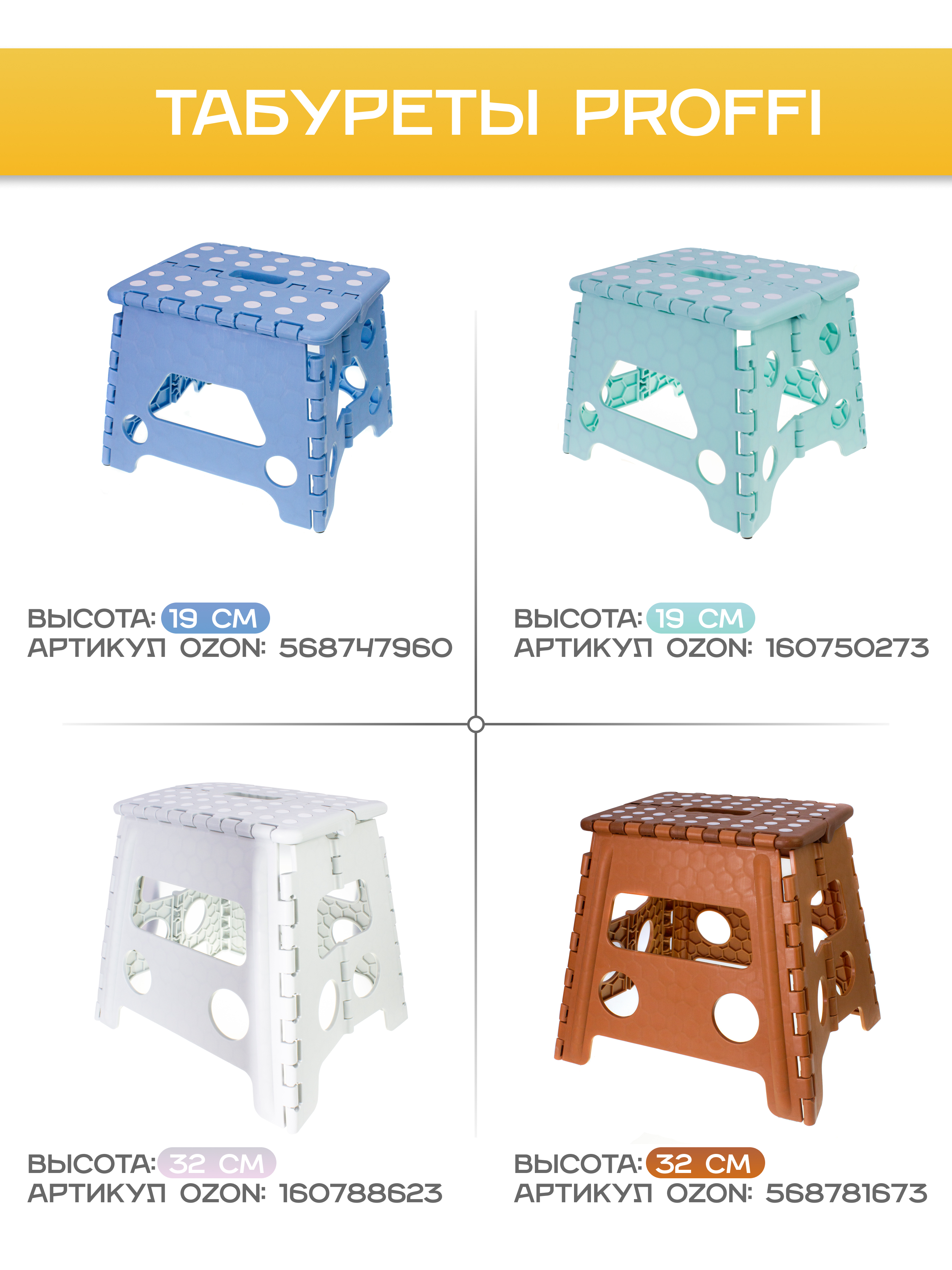 Табурет / Табурет для кухни/ Табурет складной пластиковый, 19 см