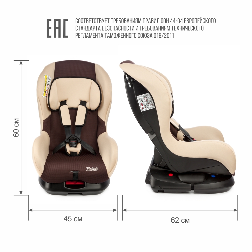 Автокресло удерживающее, детское Zlatek Galleon цвет коричневый, группа 0-1, от 0 до 18 кг, 0-4 года.