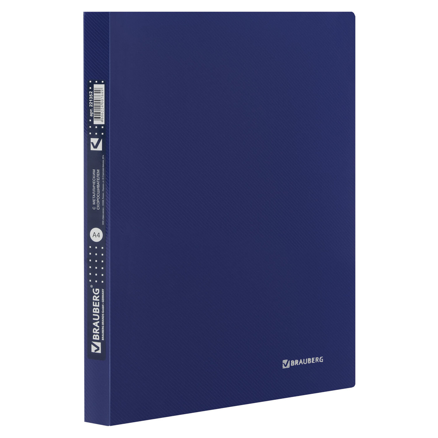 Папка с металлическим скоросшивателем и внутренним карманом Brauberg "Диагональ", темно-синяя, до 100 листов, 0,6 мм