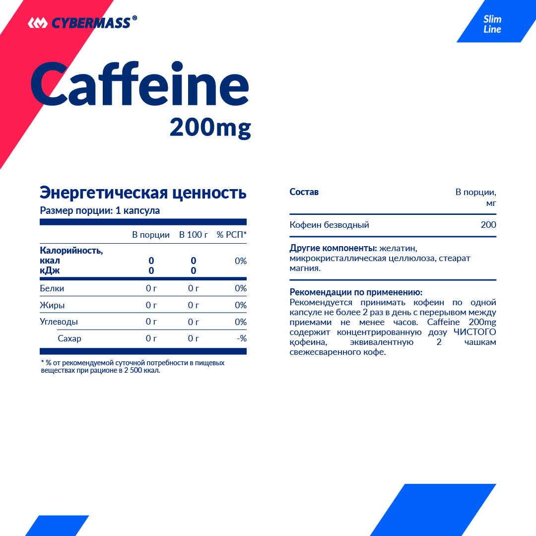 Энергетик Cybermass Caffein 200 mg, 100 капсул