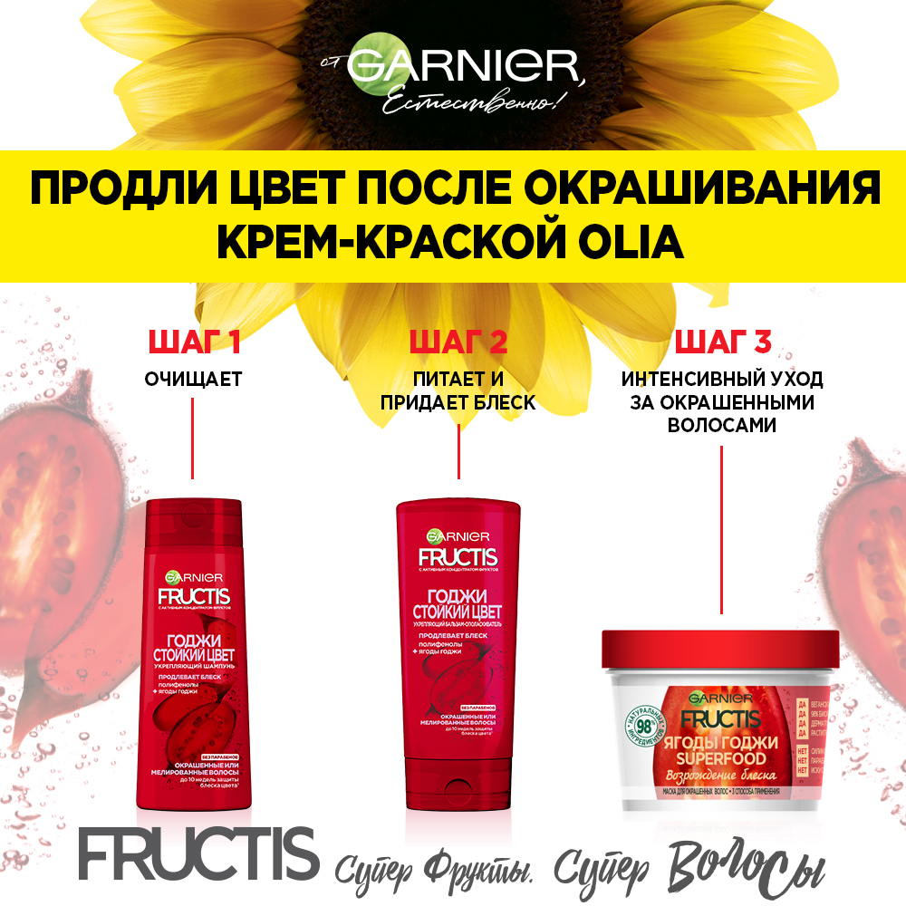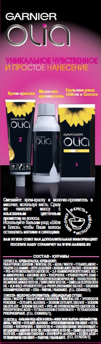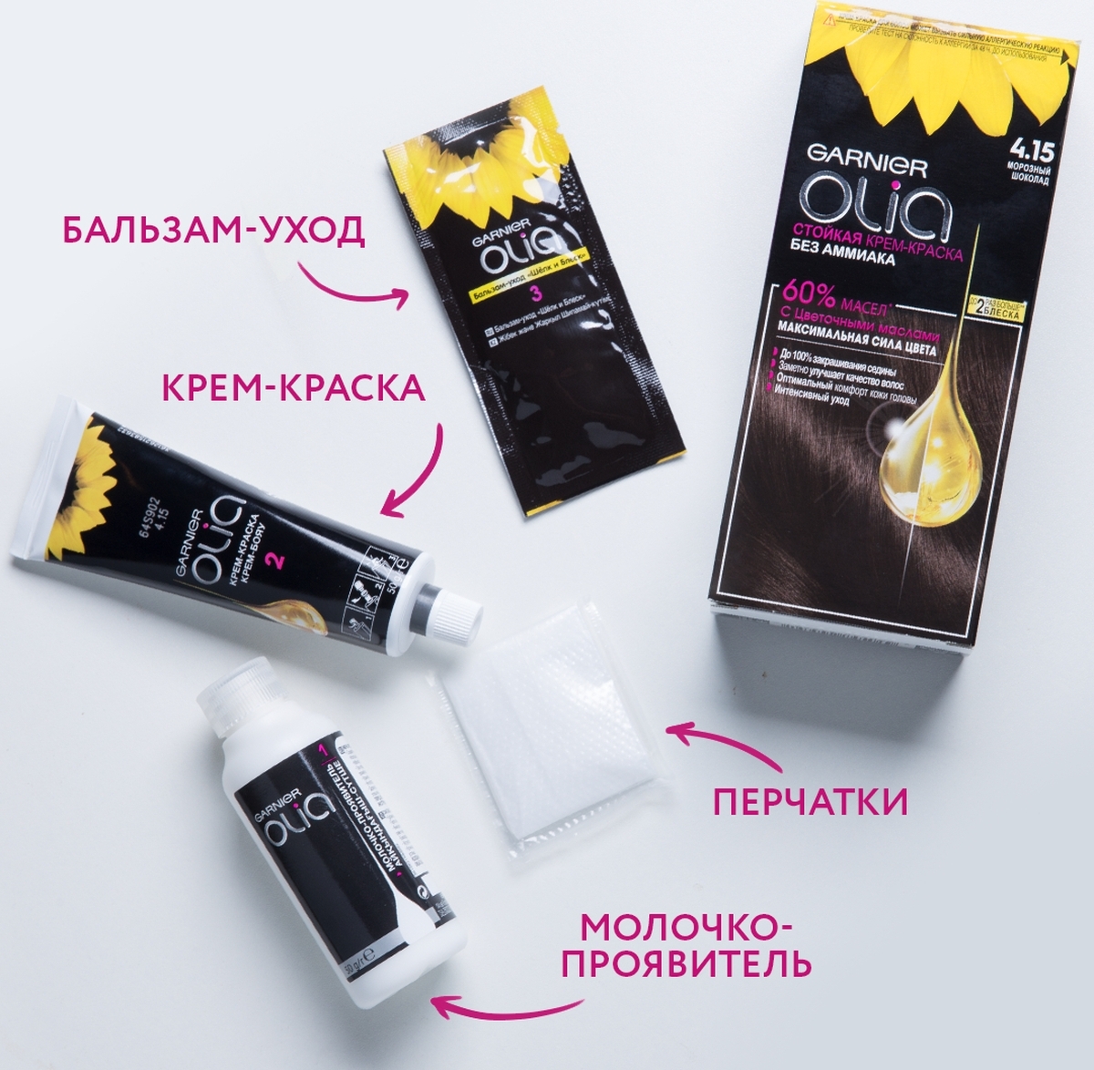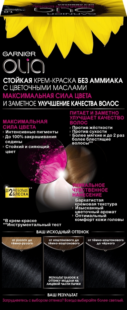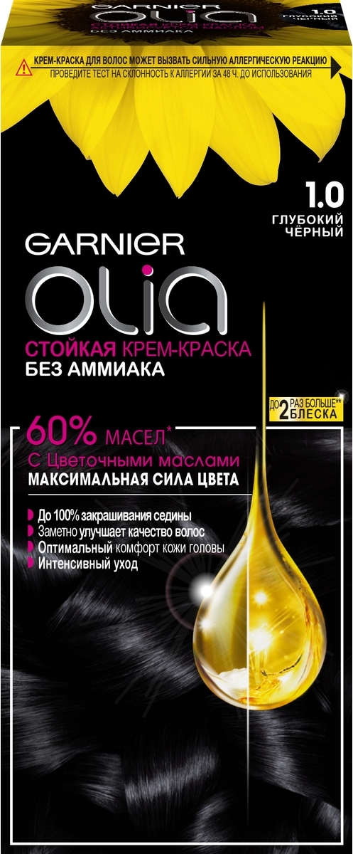 Garnier Стойкая крем-краска для волос Olia с цветочными маслами, без аммиака, оттенок 1.0, Глубокий черный, 112 мл.