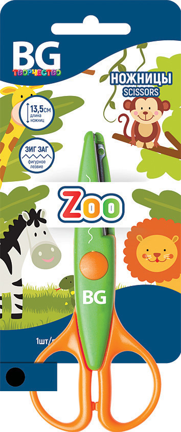 Ножницы детские BG "Zoo" 13,5 см, с фигурными лезвиями