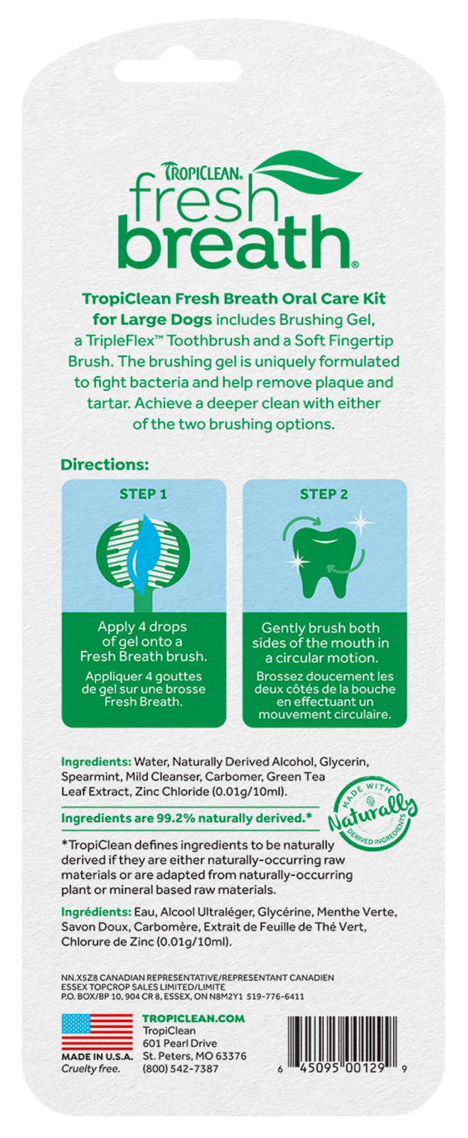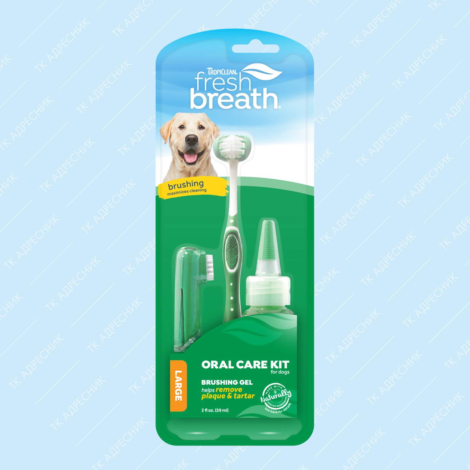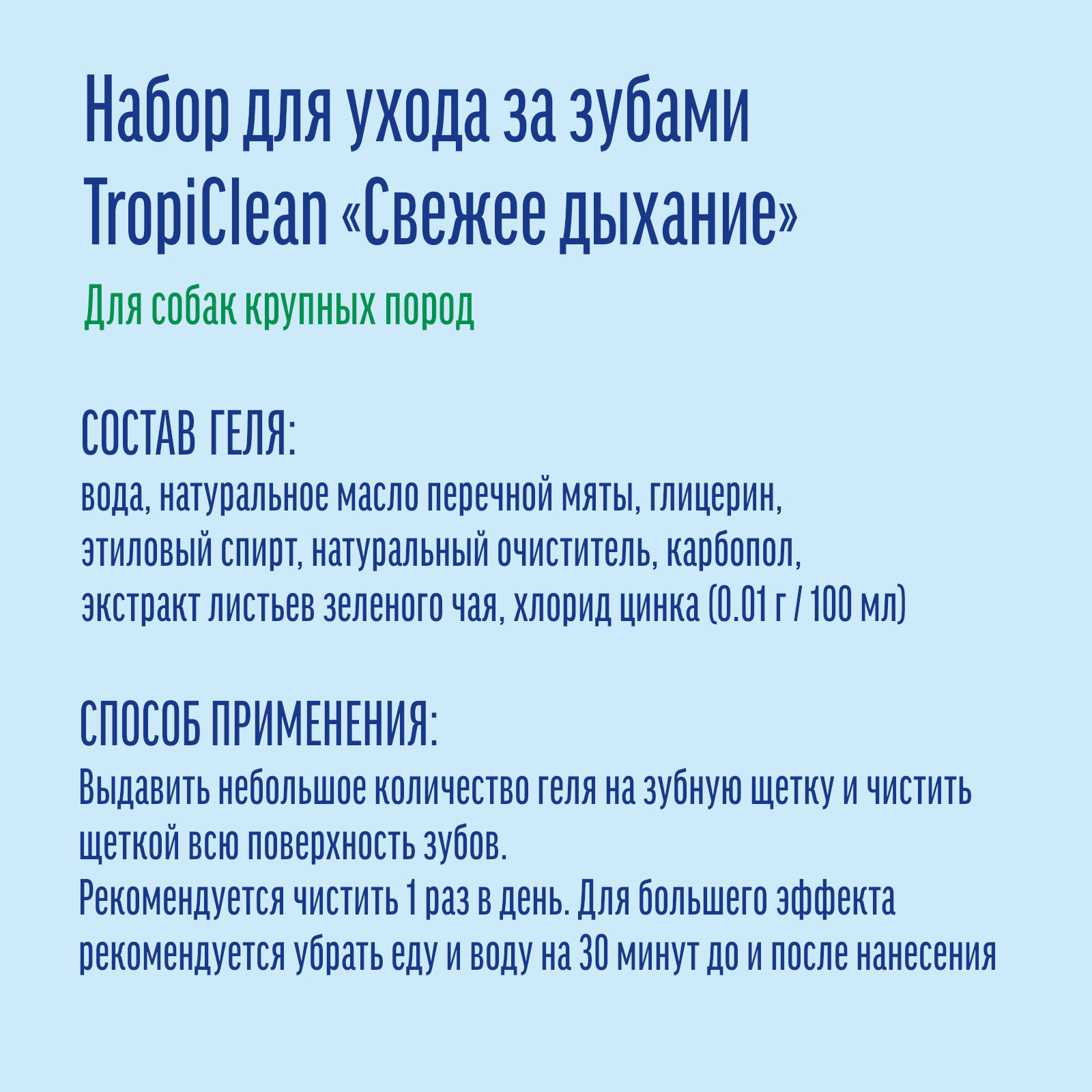 Набор для ухода за зубами собак TropiClean "Свежее дыхание". Для крупных пород.